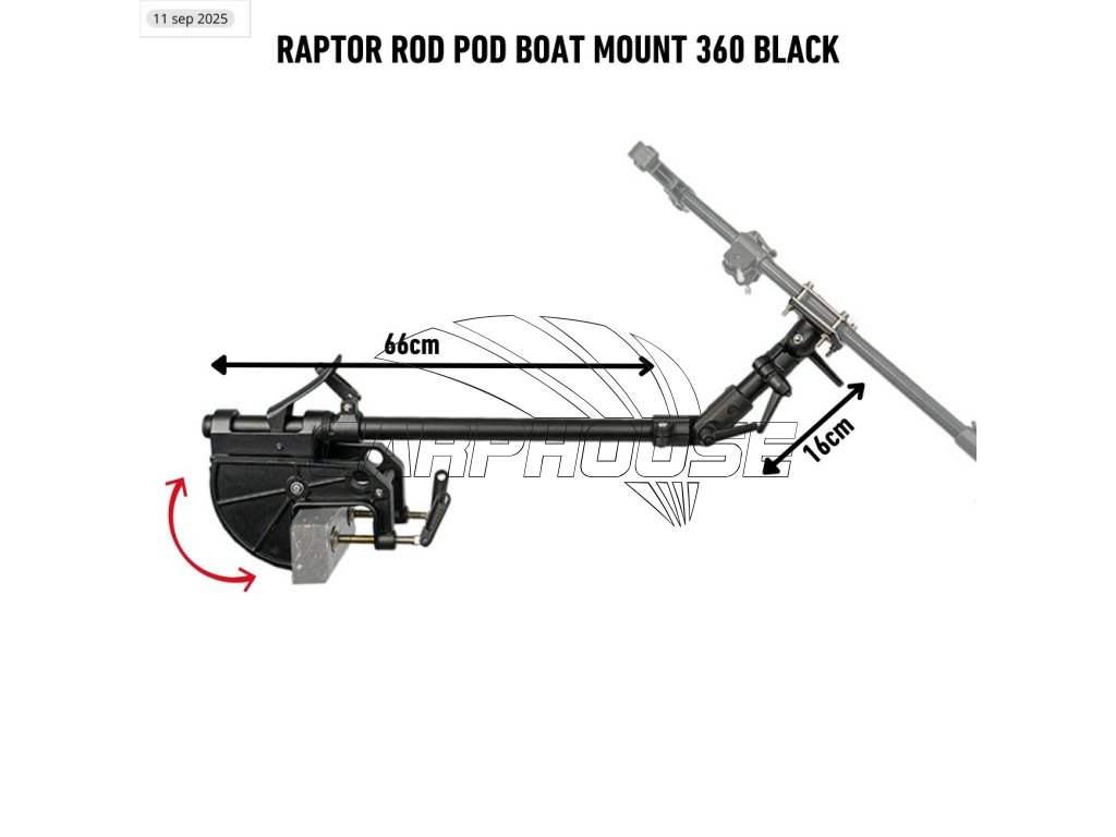 Raptor Stojan Na Člun Základna A Rameno 360° Black